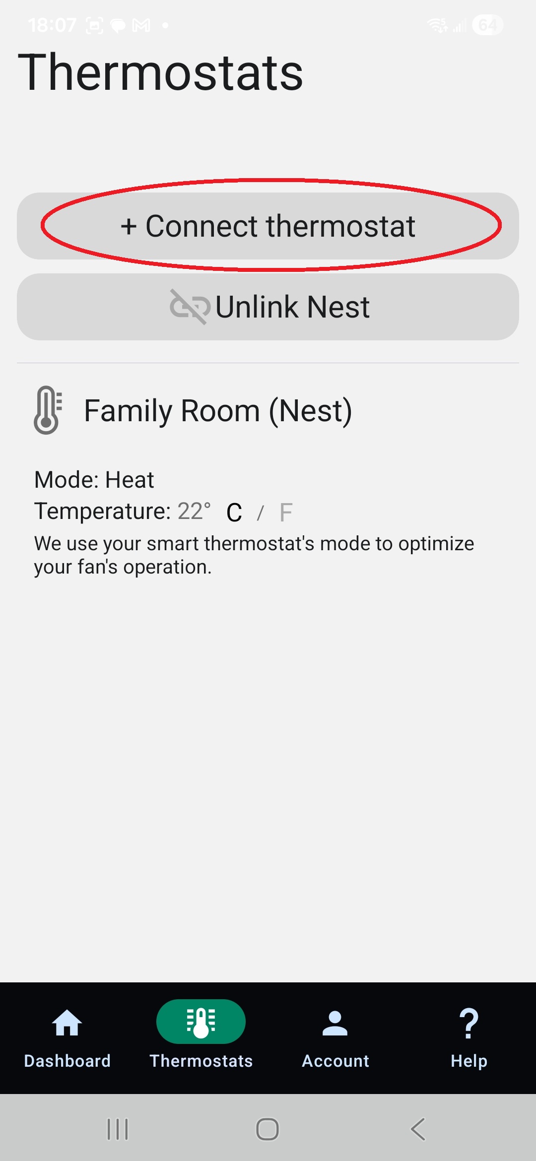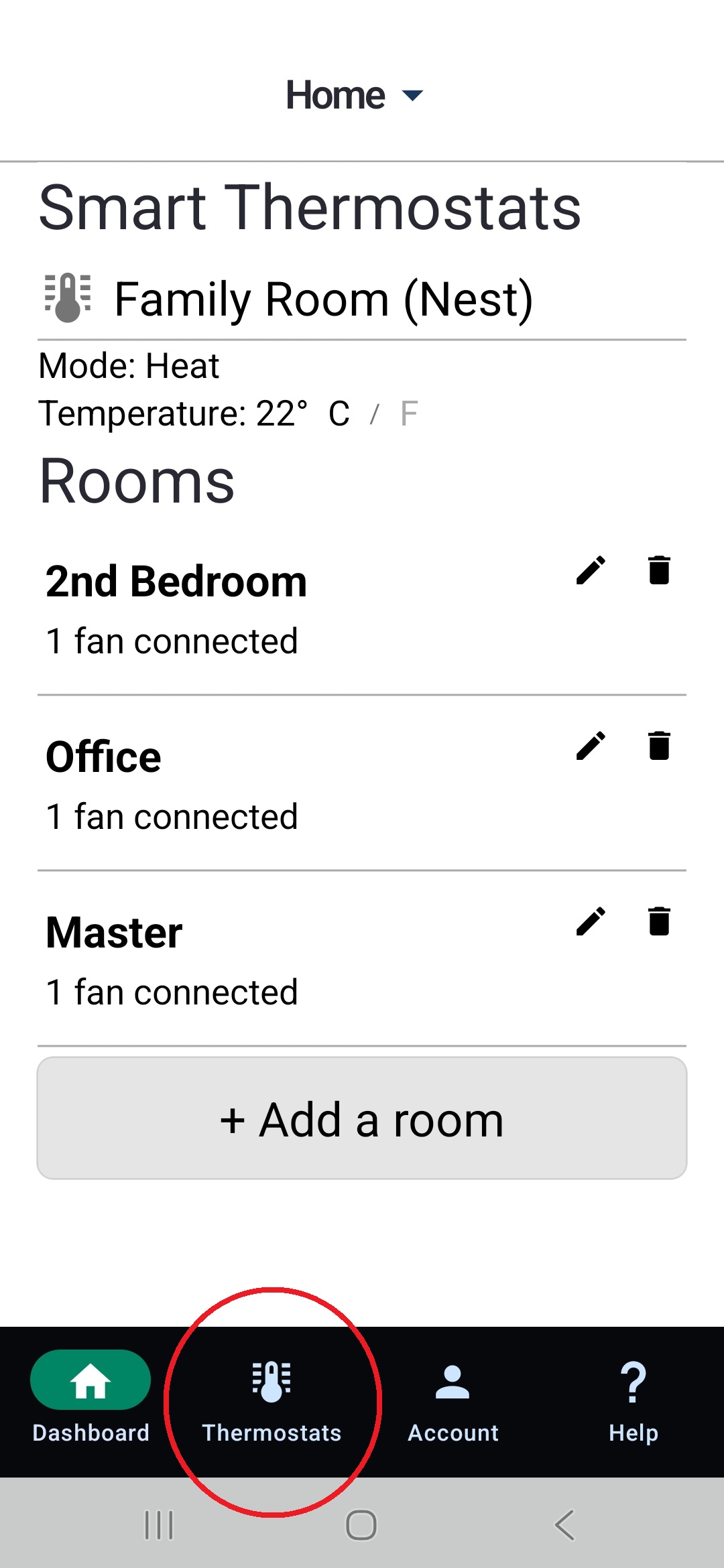 5. On the dashboard, tap “Thermostats” and add your Nest thermostat again.