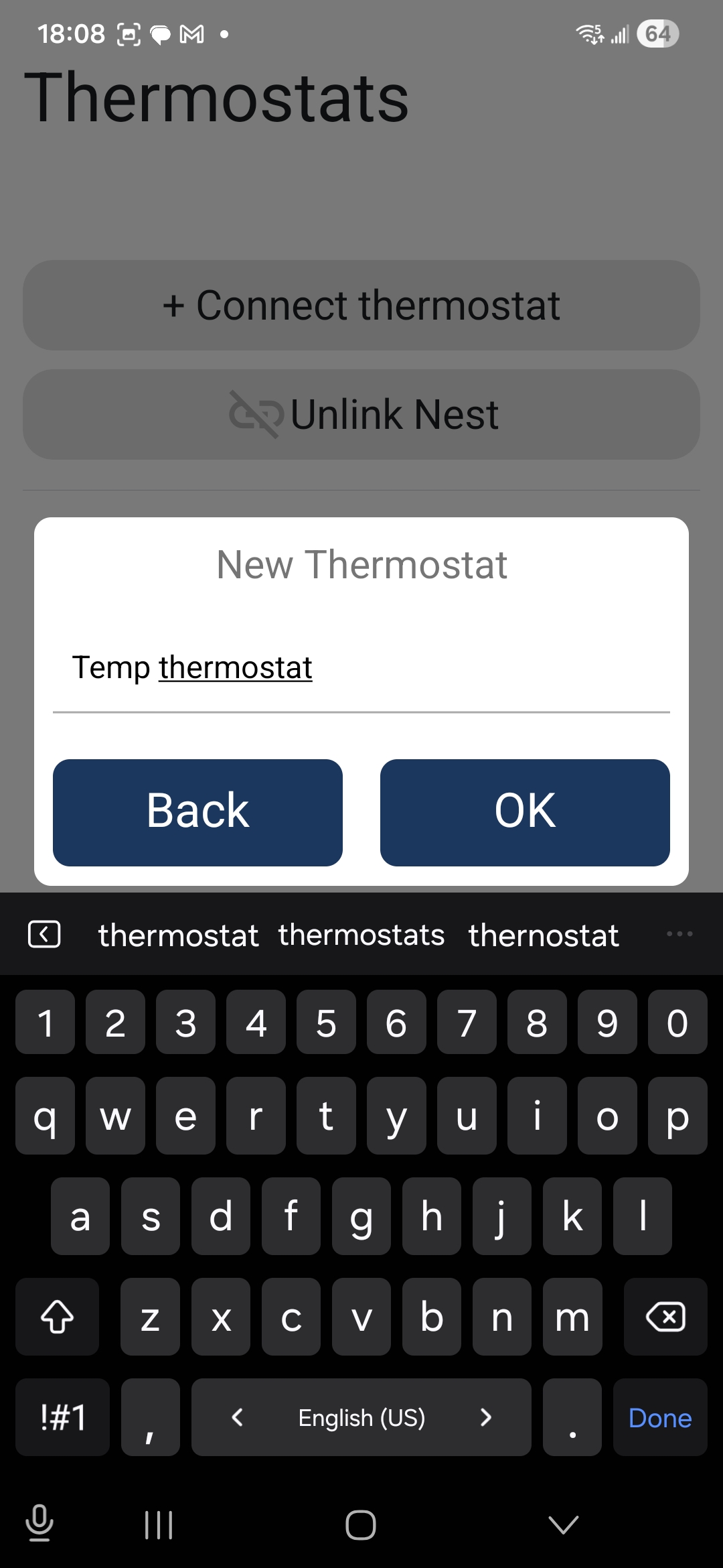 You can name this thermostat anything you like—for example, we named it “Temp Thermostat.”