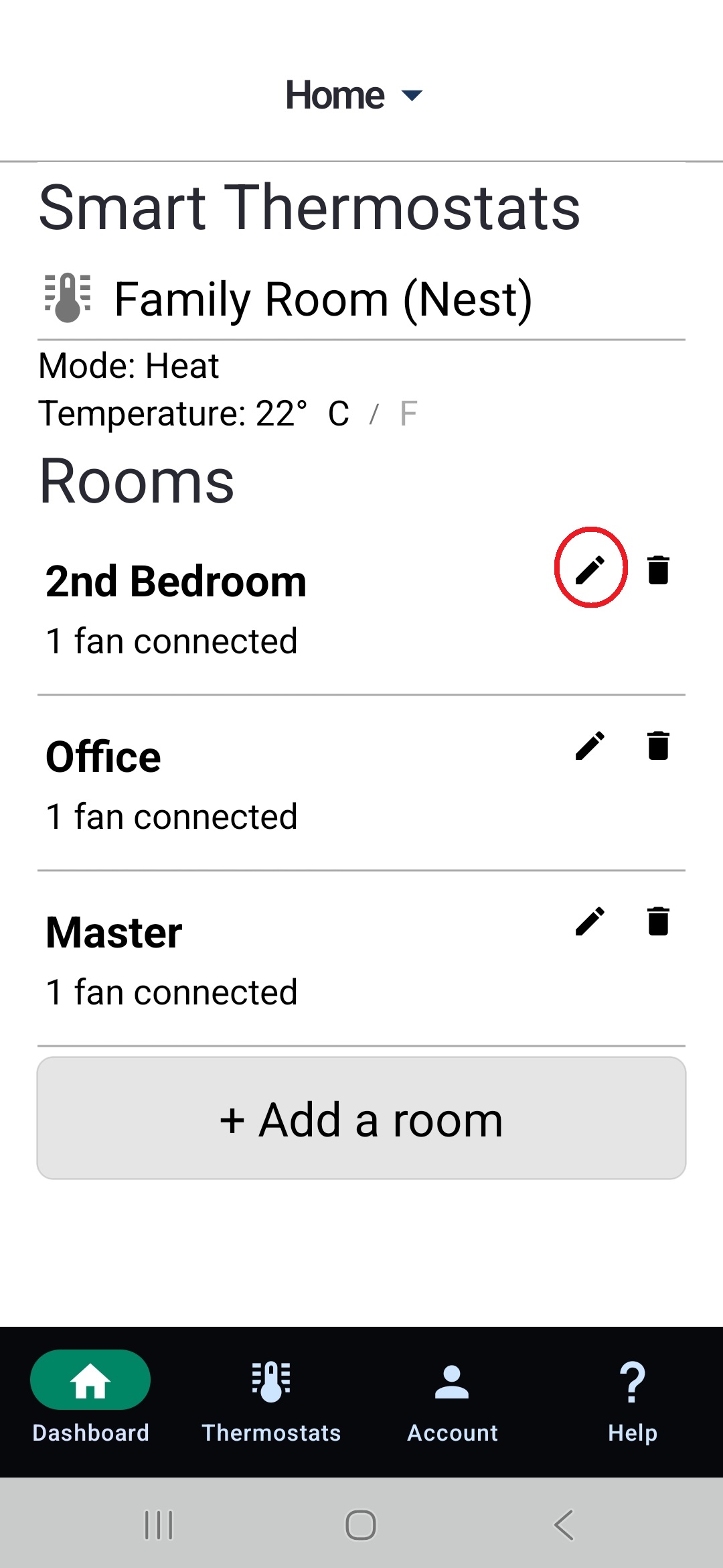 6. Once Nest has been successfully added and you can see its temperature readings, return to the dashboard and reconnect your rooms to Nest by repeating Step 2.